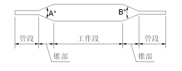 稱為工作段;兩端管段的作用是和導(dǎo)管其余部分進行連接;錐