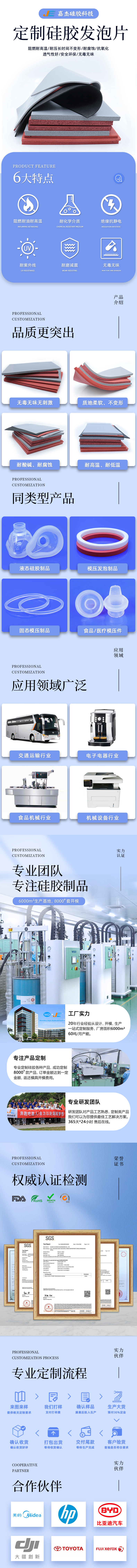 深圳市嘉杰橡塑有限公司是廣東深圳地區(qū)專業(yè)硅膠制品生產(chǎn)制造供應廠商,發(fā)泡類產(chǎn)品是我廠一特色主打產(chǎn)品,各種規(guī)格均可定制,另還可定做各種硅膠管、硅膠密封圈等系列產(chǎn)品。