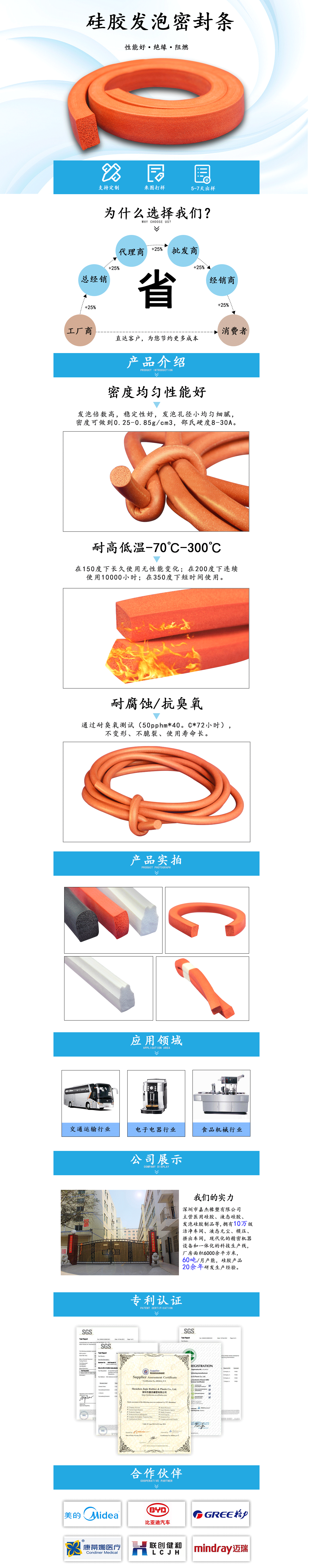 ![]() 長(zhǎng)方形硅膠發(fā)泡密封條: 硅膠發(fā)泡條是用獨(dú)特配方工藝生產(chǎn)的保溫管,耐高溫250度,耐低溫零下50度,具有很好的隔音阻熱效果,是理想的密封隔熱材料,質(zhì)地為海綿體較柔軟,密度高,表面結(jié)皮光滑,耐老化使用壽命長(zhǎng)。 長(zhǎng)方形硅膠發(fā)泡密封條性能:1.輕便、強(qiáng)韌性輕便并且具有較強(qiáng)的韌性; 2.隔熱性導(dǎo)熱性低,具有優(yōu)越的保溫性; 3.非吸水性具有獨(dú)立氣泡結(jié)構(gòu),吸水性很低; 4.緩沖性抗沖性能極佳,可用作緩沖材料; 5.耐候性耐候性極佳。 長(zhǎng)方形硅膠發(fā)泡密封條用途: 長(zhǎng)方形硅膠發(fā)泡密封條主要用于配套電器、電子、家具設(shè)備、玩具、五金、醫(yī)療設(shè)備、體育用品、音響、燈飾、機(jī)械、汽車、瓶罐密封、建筑幕墻密封等行業(yè)。 |