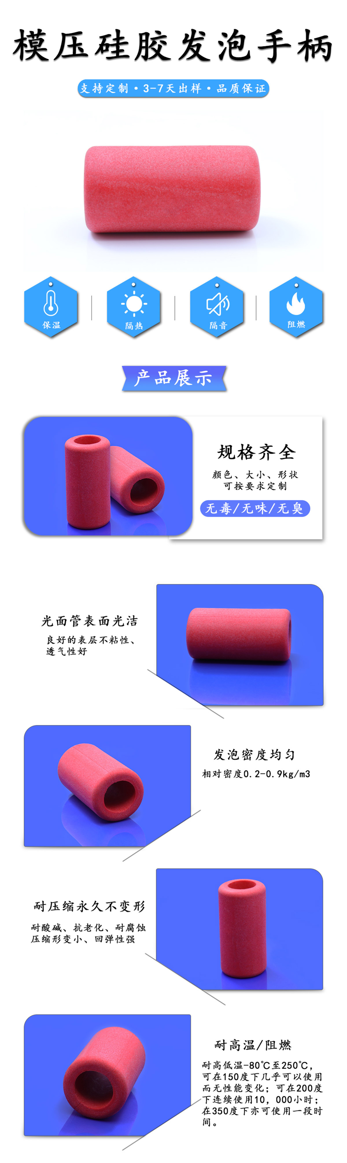 模壓硅膠發(fā)泡手柄性能: