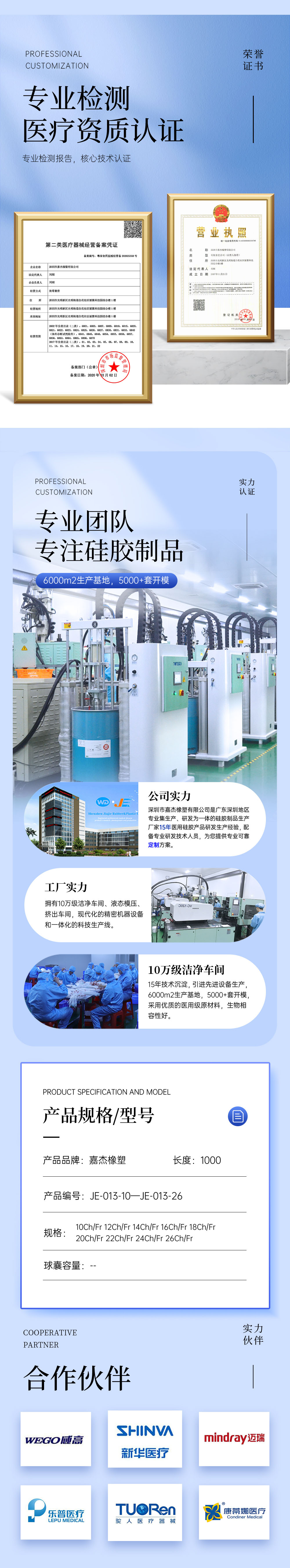采用優(yōu)質(zhì)醫(yī)療級(jí)硅膠原料制作,具有良好的物理特性,無毒無味且沒有過敏反應(yīng),柔軟高透明可高溫消毒